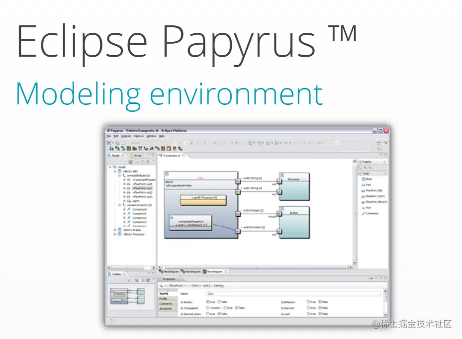 前身为TOPCASED。Eclipse的UML插件,随Eclipse升级。致力于关键系统的建模。支持UML2.5、SysML 1.6,可自行添加图形,代码生成器。