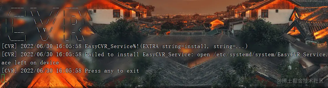 技术人员进入用户的EasyCVR服务器,通过PS查看进程发现内核在运行,但是服务停止了。重新将整个服务停止再启动,发现程序一直无法以服务方式启动。