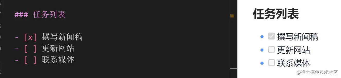 任务列表是我编写文档时比较常用的部分,主要用来管理自己的任务清单,确认已完成和未完成的各种事项。
