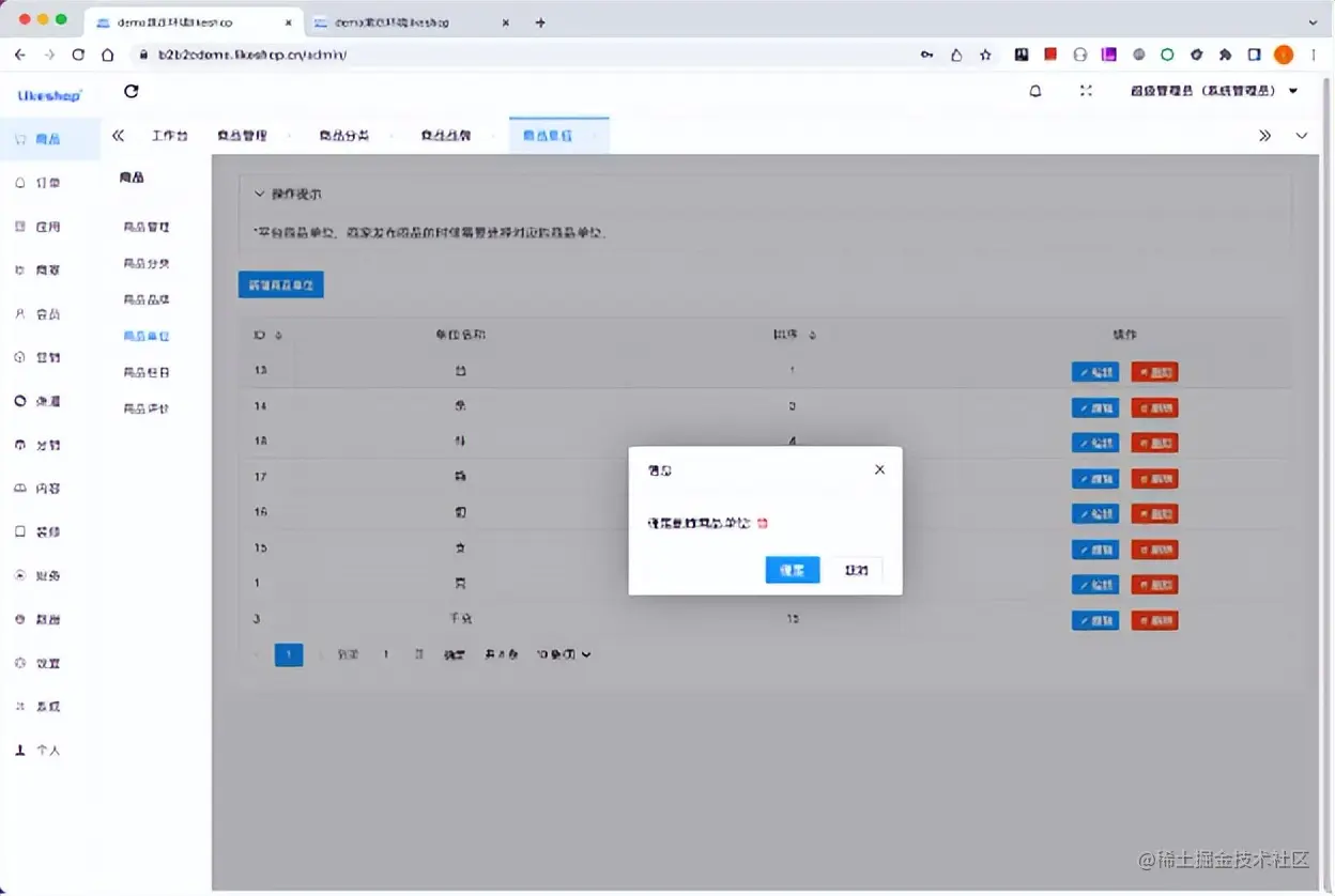 (多商户商城系统-平台端删除商品单位)