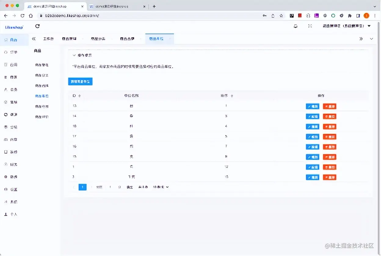 平台商品单位可以删除,如果有商品关联当前单位,则不支持删除。