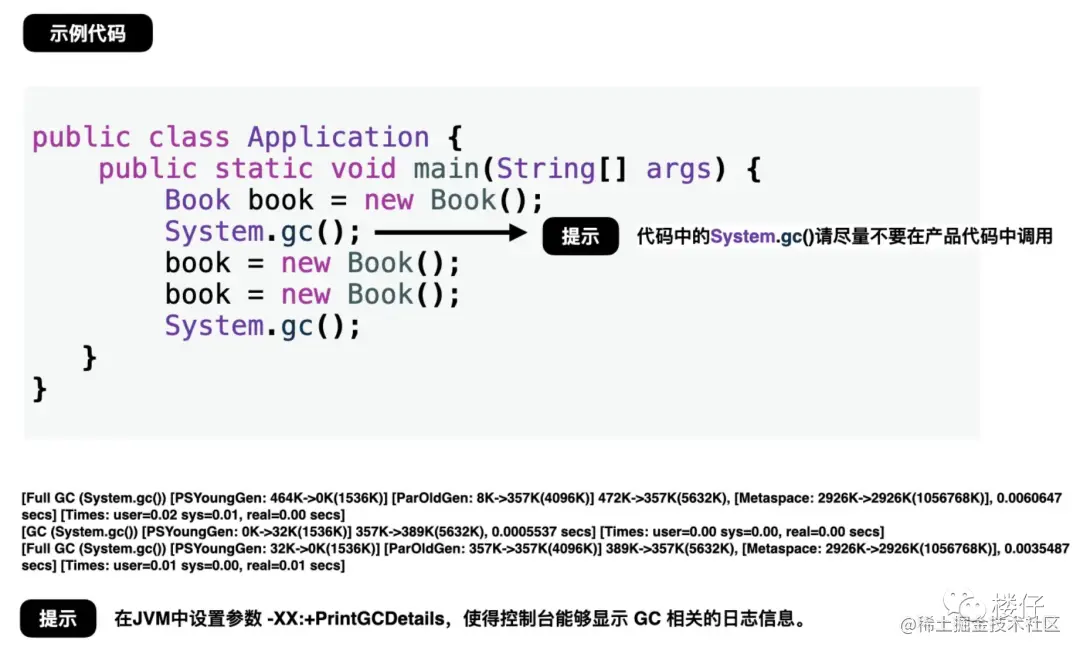 注意:如果垃圾收集次数非常频繁,但是每次能回收的对象非常少,那么这个时候并非内存太小,而可能是内存泄露导致对象无法回收,从而造成频繁GC。