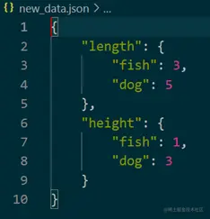 然后,我们使用 Python 提供给我们的 "with" 语句。"with" 语句使处理文件非常容易。我们创建一个名为*"new_data.json "的新文件。文件扩展名".json "在这里非常重要,它告诉程序我们要创建一个JSON文件。我们使用包含上述对象的 "data" 变量将JSON对象写进这个文件。一旦执行,一个新的文件"new_data.json "*就在工作目录中被创建。当我们打开它时,我们可以在一个单独的文件中看到JSON对象。