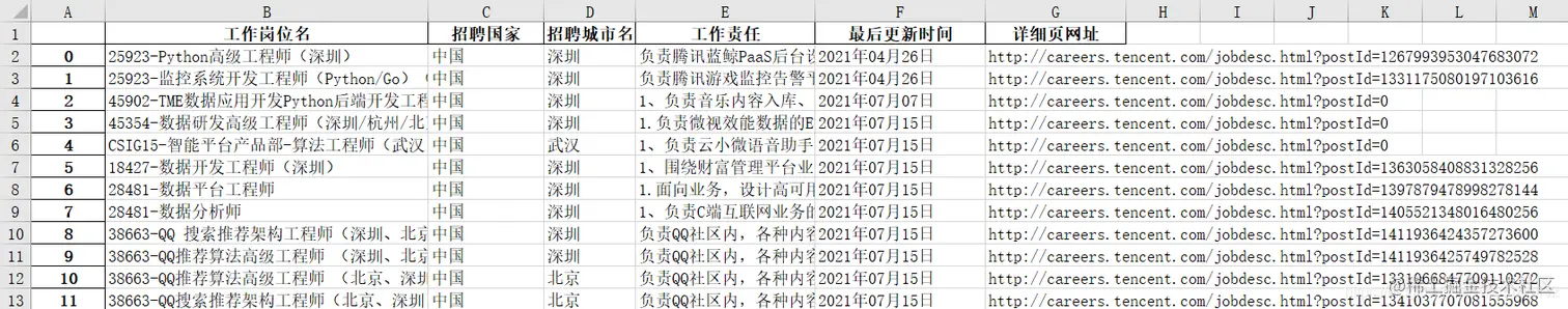 excel_dict["工作岗位名"].append(i['RecruitPostName'])