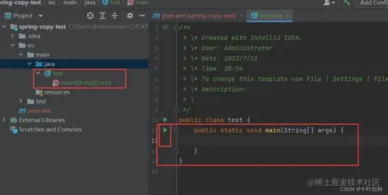 在创建好的项⽬ java ⽂件夹下创建⼀个启动类main: