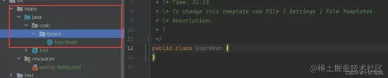 这里所谓的创建Bean ,其实就是创建一个 Java 的普通类。只不过权限是由 spring 所持有,千万不要被名字唬到。