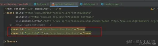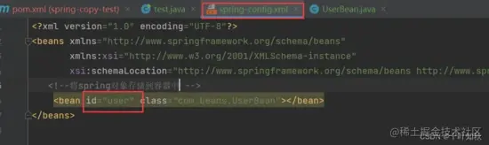 这里的 id 可以理解为一个别名,我们给刚刚创建的这个UserBean类,起了一个叫“user"的别名