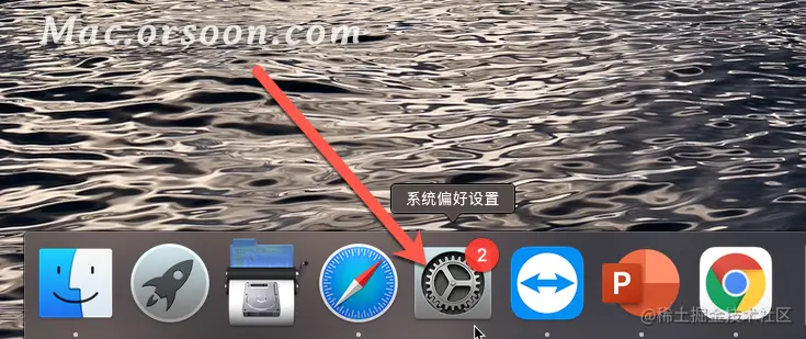 1.首先把想要设置成壁纸的图片放在桌面上,打开Mac电脑的「系统偏好设置」。
