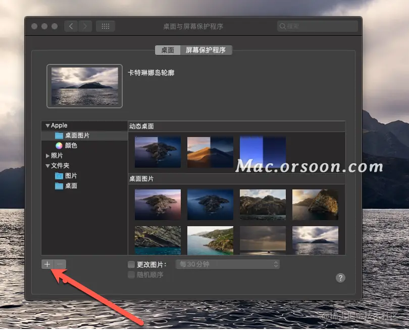 此外,在桌面空白处单击右键,选择更改背景,能直接进入到桌面与保护程序的弹窗中,就不用到系统偏好设置了。