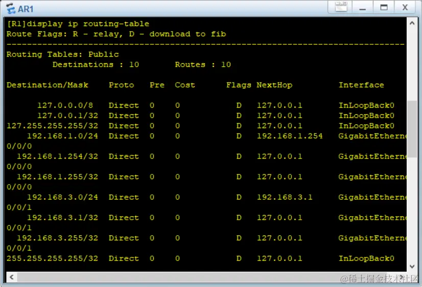 [R1-GigabitEthernet0/0/0]display this###查看配置信息