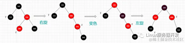 4. 当前结点的兄弟结点是黑色的,而且兄弟结点的左孩子是红色的,右孩子是黑色的