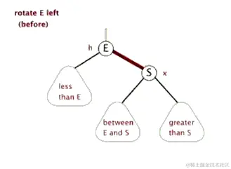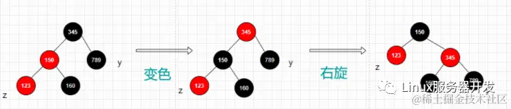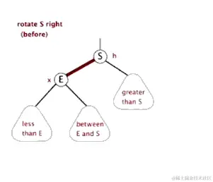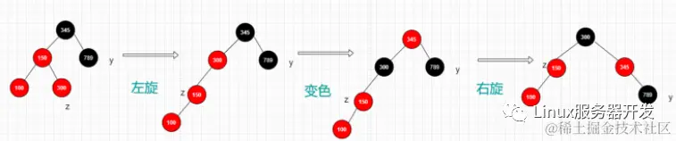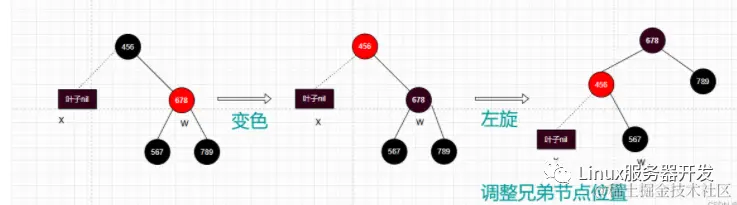 // 情况3:x的兄弟节点是黑色的,兄弟的左孩子是红色,右孩子是黑色