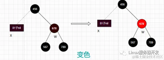 //如果x是红色,变成黑色,如果x是黑色,需要调整