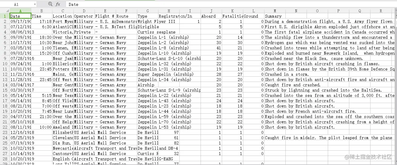 18 getData("飞行事故数据统计_Since_1908.csv");