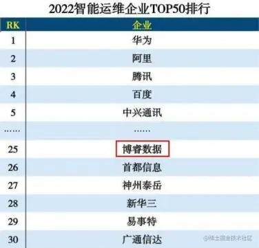 日前,互联网周刊&eNet研究院联合发布了“2022智能运维企业Top50排行”榜单,博睿数据凭借卓越的综合实力成功入选。