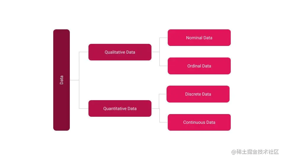 在定性数据的保护伞下还有其他广泛的分类,如名义和顺序数据,以及定量数据的离散和连续,其中每个单独的分类都有具体的特征。