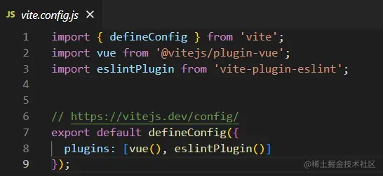 观察vite.config.js文件,发现多了eslintPlugin插件: