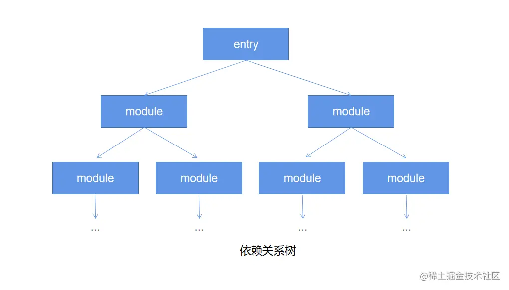在一切流程最开始,我们需要指定一个或者多个入口(entry),也就是告诉webpack具体从源码的哪个位置开始打包,如果把工程的各个模块的依赖关系当做一棵树,那么入口就是这颗依赖树的树根。