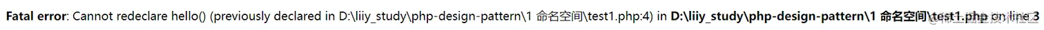 这就是上面说到的重名的问题。此时就需要我们在 test1.php test2.php 加入命名空间。