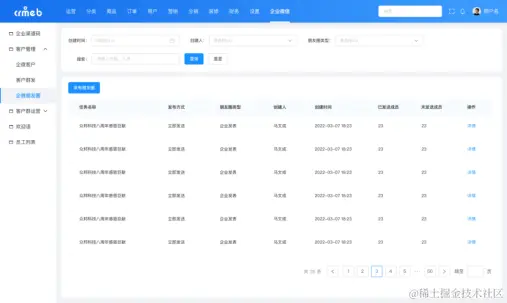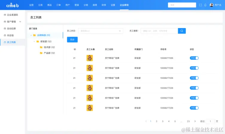 在 CRMEB Pro v2.2 更新中,CRMEB 特别对接企业微信,将客户关系管理转移至企业微信系统中,合理运用企业微信强大的管理与数据统计功能,让客户关系管理更加智能,让客户信息数据统计更加便捷。