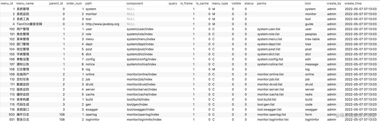 首先我们来看看菜单表的定义,也就是 sys_menu。