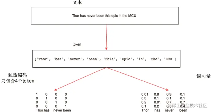 · 将文本转换为词并将每个词表示为向量;