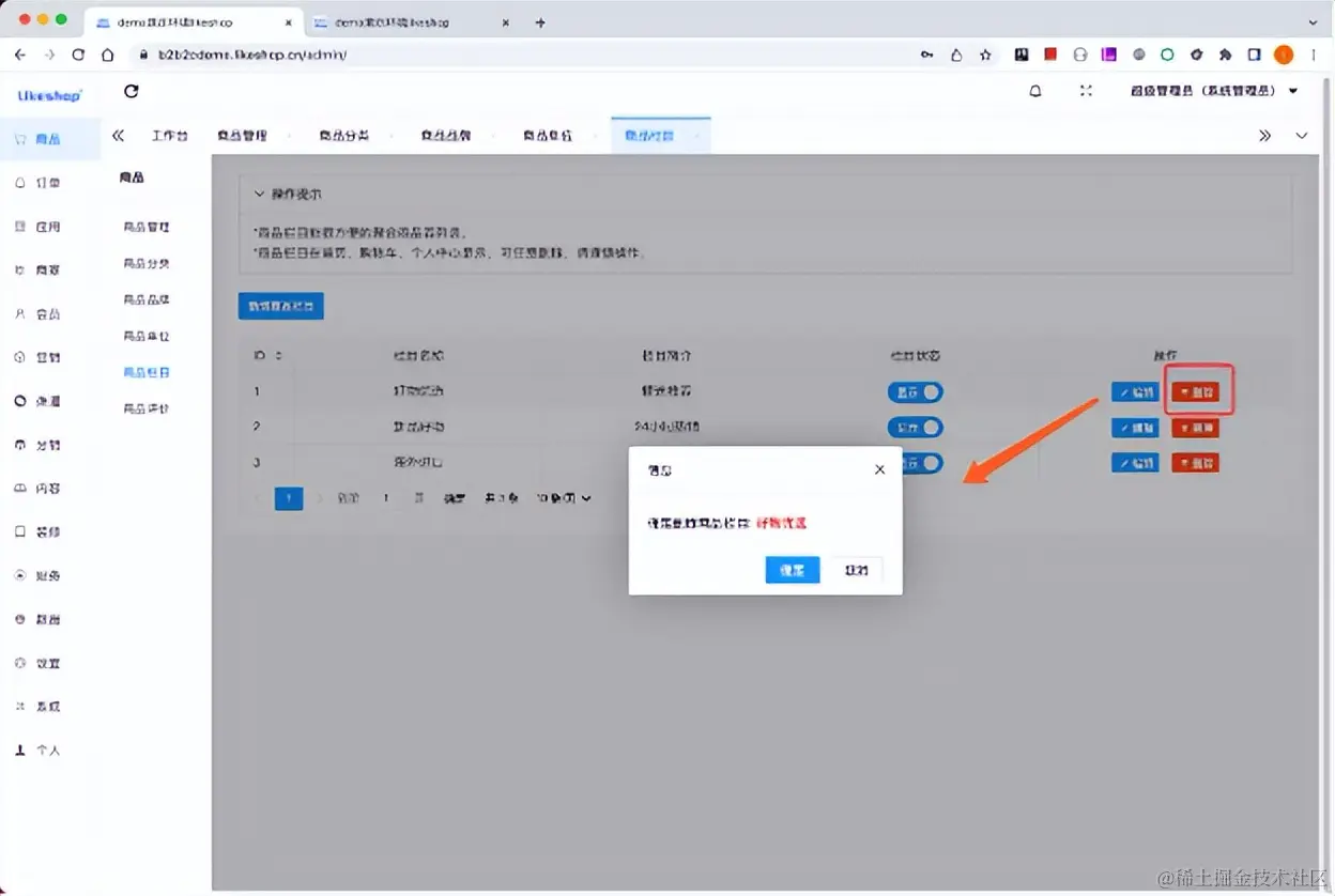 (多商户商城系统-平台端删除商品栏目)