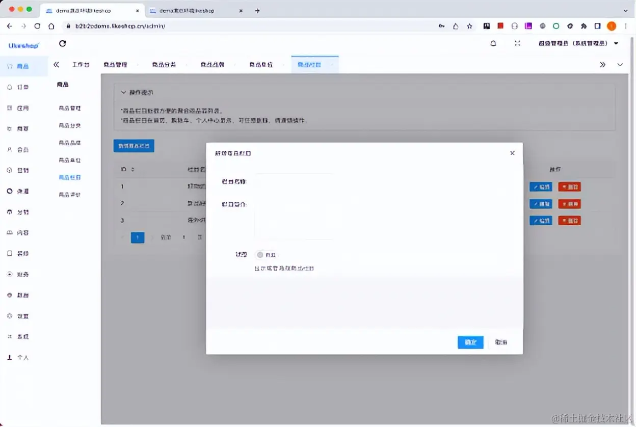 (多商户商城系统-平台端商品栏目)