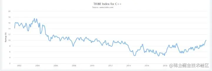 从20年开始,C++的曲线呈波浪式上升,49年国军到最后应该没有一直增长吧。