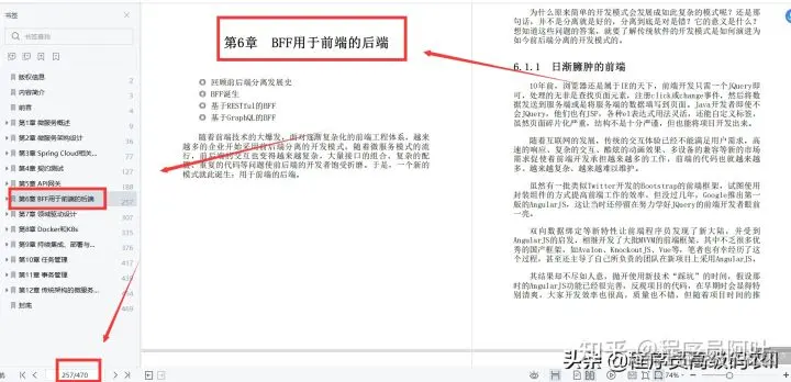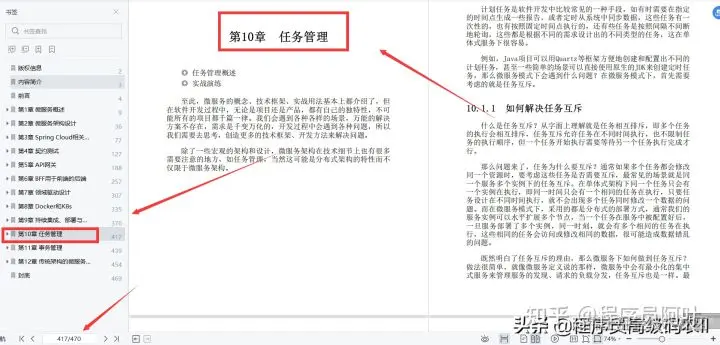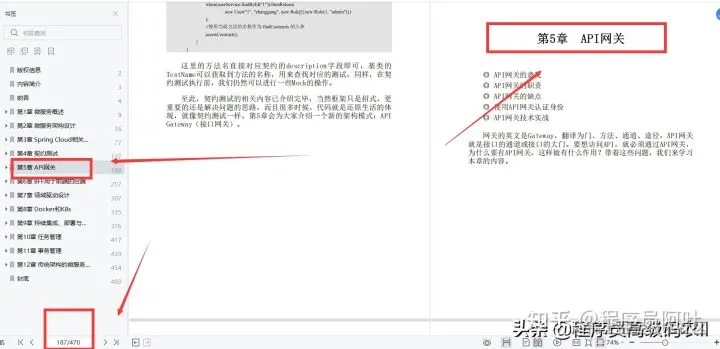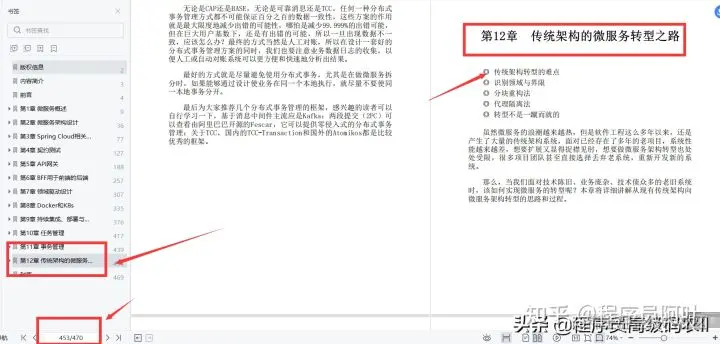 本文总共有470页,包含12章的内容,微服务概述微服务架构设计、Spring Cloud相关组件、契约测试、API网关、BFF用于前端的后端领域驱动设计、Docker和K8s、持续集成、部署与交付、任务管理、事务管理、传统架构的微服务转型之路。
