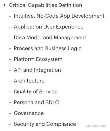 Gartner在2020年9月发布的《企业级低代码开发平台的关键能力报告》(Critical Capabilities for Enterprise Low-Code Application Platforms)中,列举了低代码的11项关键能力。