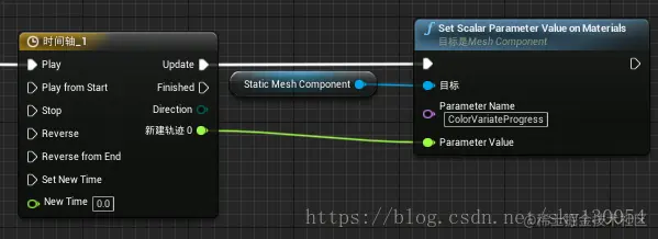 然后再事件图表中改变目标颜色的值“ColorVariationDest”,再添加一个时间轴改变alpha“ColorVariateProgress”的值。