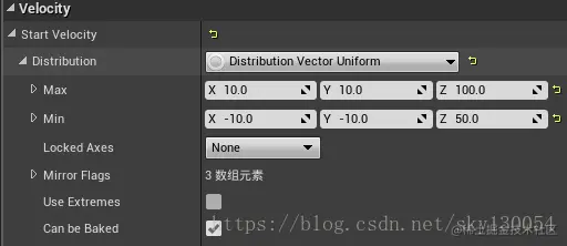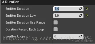 以上表示发射器持续时间为3秒,且至少持续1秒,并且“Emitter Loops”表示循环次数,为0表示无限循环,但当“Emitter Loops”为1且持续时间为0时也表示无限循环