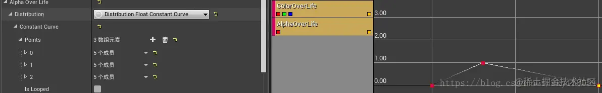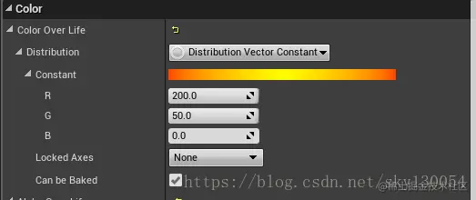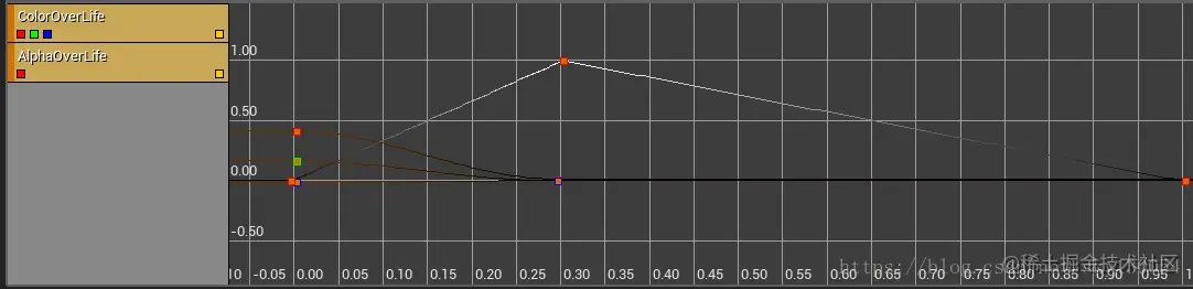 用模块“color over life”改变材质RGB与Alpha