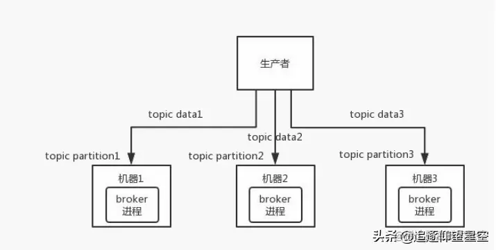 这就是天然的分布式消息队列,就是说一个topic 的数据,是分散放在多个机器上的,每个机器就放一部分数据。