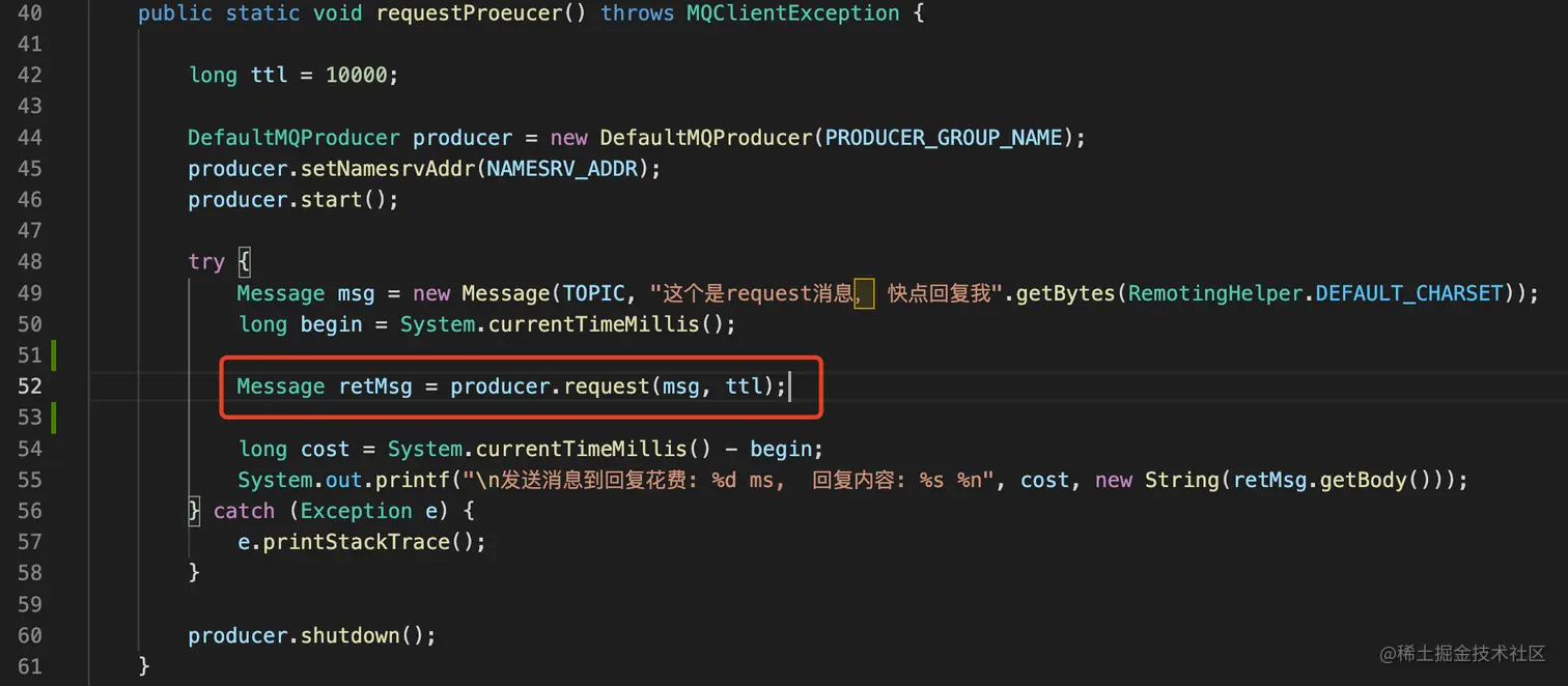 request-reply模式,在生产者和消费者两端都和一般的生产消费有区别,下面分别介绍下demo代码。