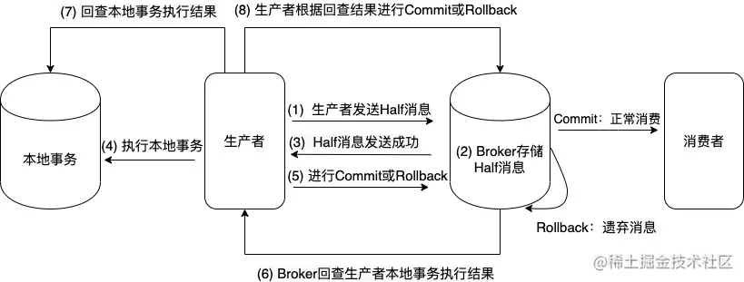 生产者处理本地事物,处理成功后commit事物