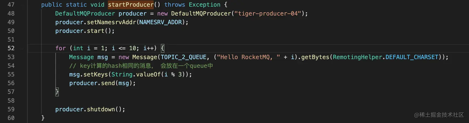 生产者会根据设置的keys做hash,相同hash值的消息会发送到相同的queue中。所以相同hash值的消息需要保证在同一个线程中顺序的发送。