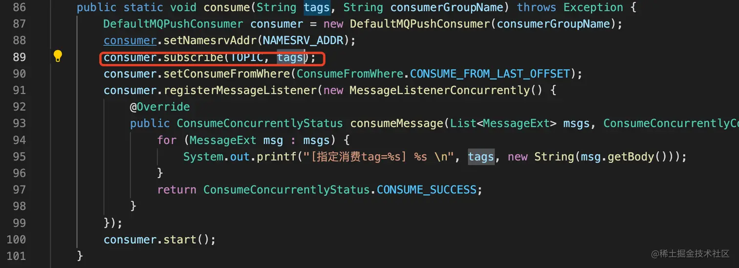 tag过滤消费时,在订阅topic时, 也添加上tag订阅