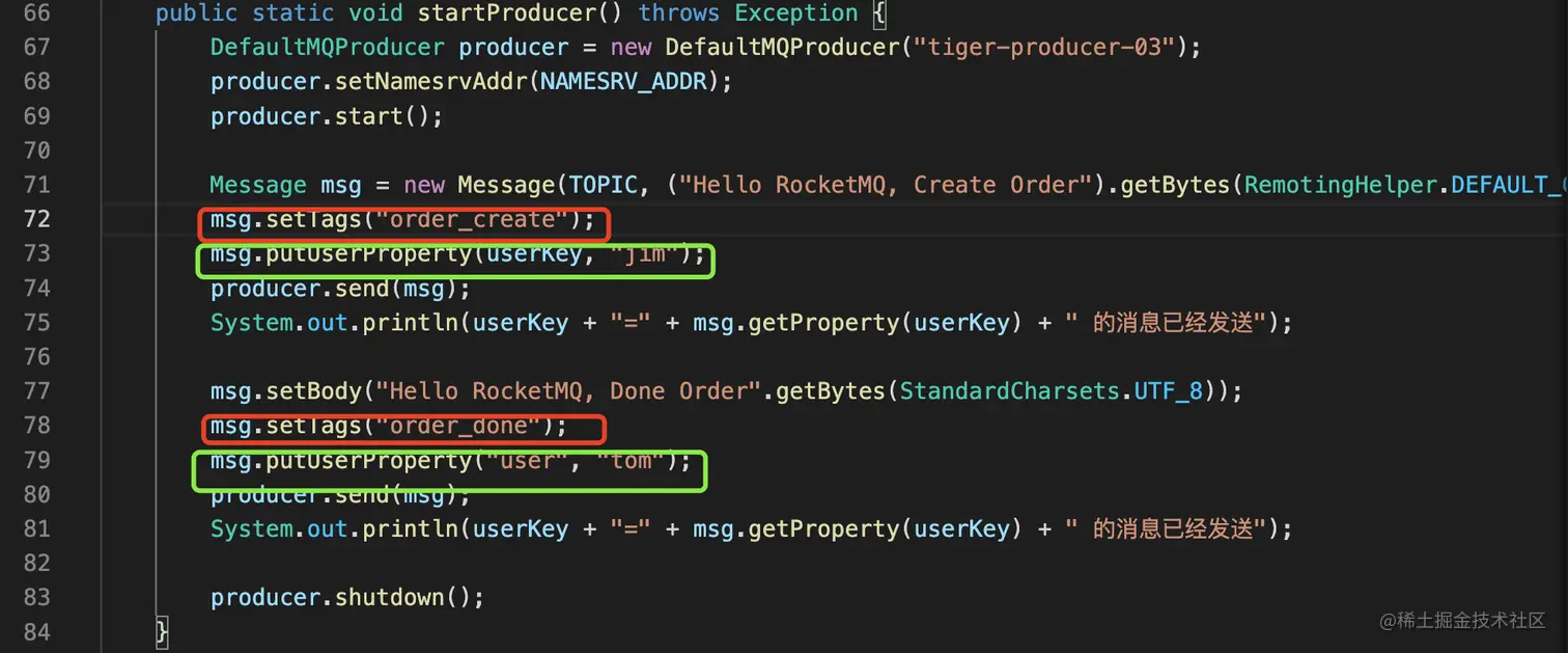 在生产tag消息的时候, 消息中需要加上发送tag;sql92过滤的时候,加上自定义k-v。