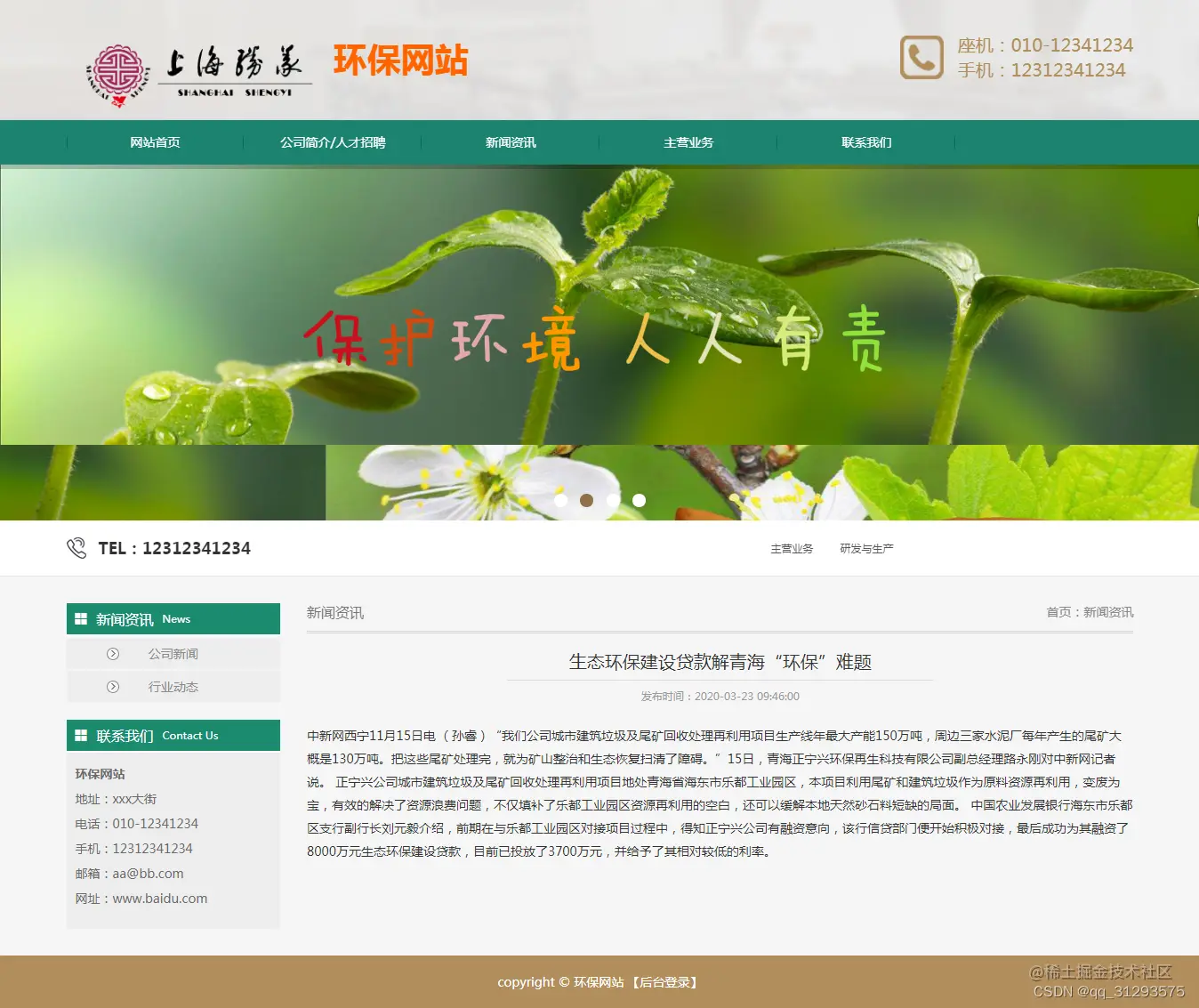 基于Java的环保企业网站管理系统