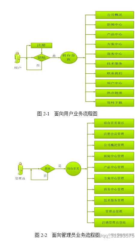 (1) 信息展示功能,前台展示信息包括(公司概况、新闻中心、产品中心等)。