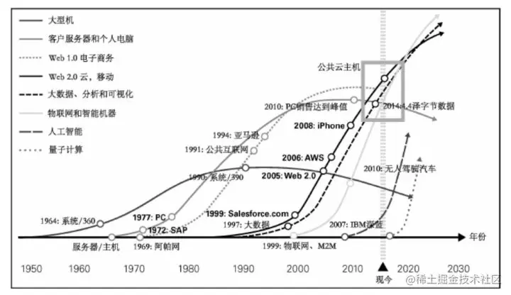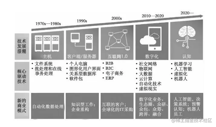 包括物联网、大数据、云计算、社交网络和人工智能等一系列数字技术,成为数字化运营的赋能工具。它们的不断发展和融合,使企业数字化转型的内涵不断拓展。如下图: