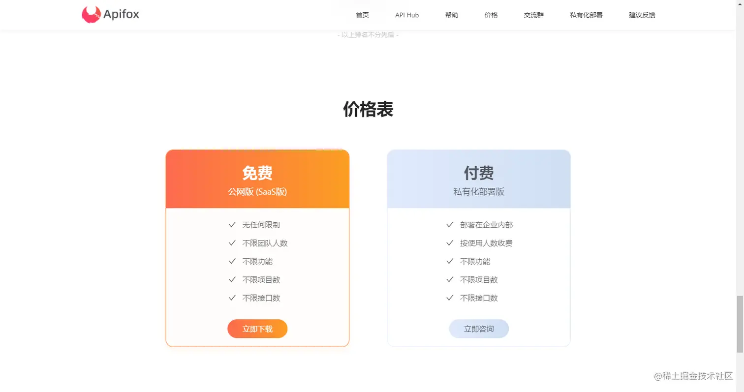 是的,你没有看错,免费版即享“无任何限制”,不限团队人数、不限功能、不限项目数、不限接口数,如此奢华的免费套餐,放眼全网也很难找到第二家(SaaS 平台)。
