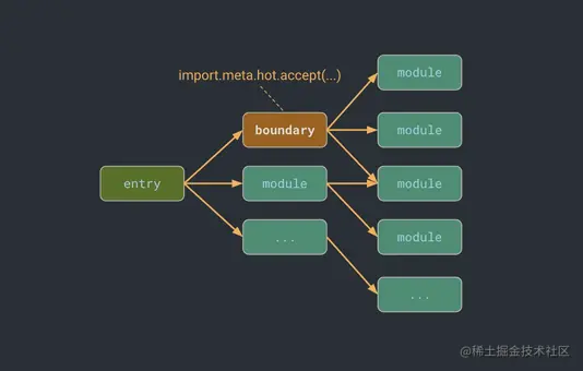 注意 HMR API 分为 接受子模块的更新 和 接受自更新 ,在查找 HMR Boundray 的过程需要注意区分。