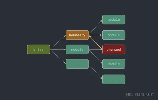 - 当模块发生变更时,会重新生成此模块相关的最小 HMR Bundle,并且将其通过 websocket 消息告知浏览器此模块发生变更,浏览器端依据模块依赖图寻找 boundaries,并且开始重新执行模块更新以及相应的 calllback。