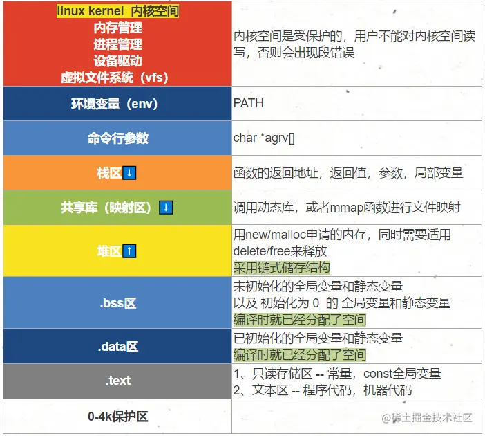 我们从 C/C++ 中知道,咱们的一个32位系统的机器,进程实际上是开辟了一个 4G 的虚拟空间,具体 4G 虚拟空间都包含了什么,我们可以简单的看看这个图,本次不在此细聊