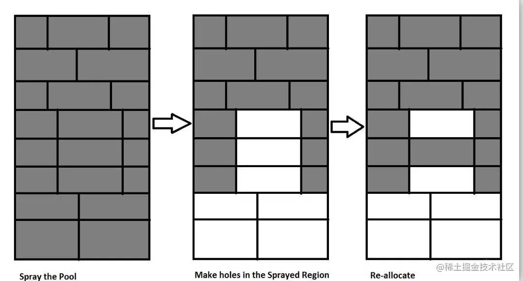 当空闲链表里有位置相邻的空闲池块,则会进行合并操作,合并成一个大的池块