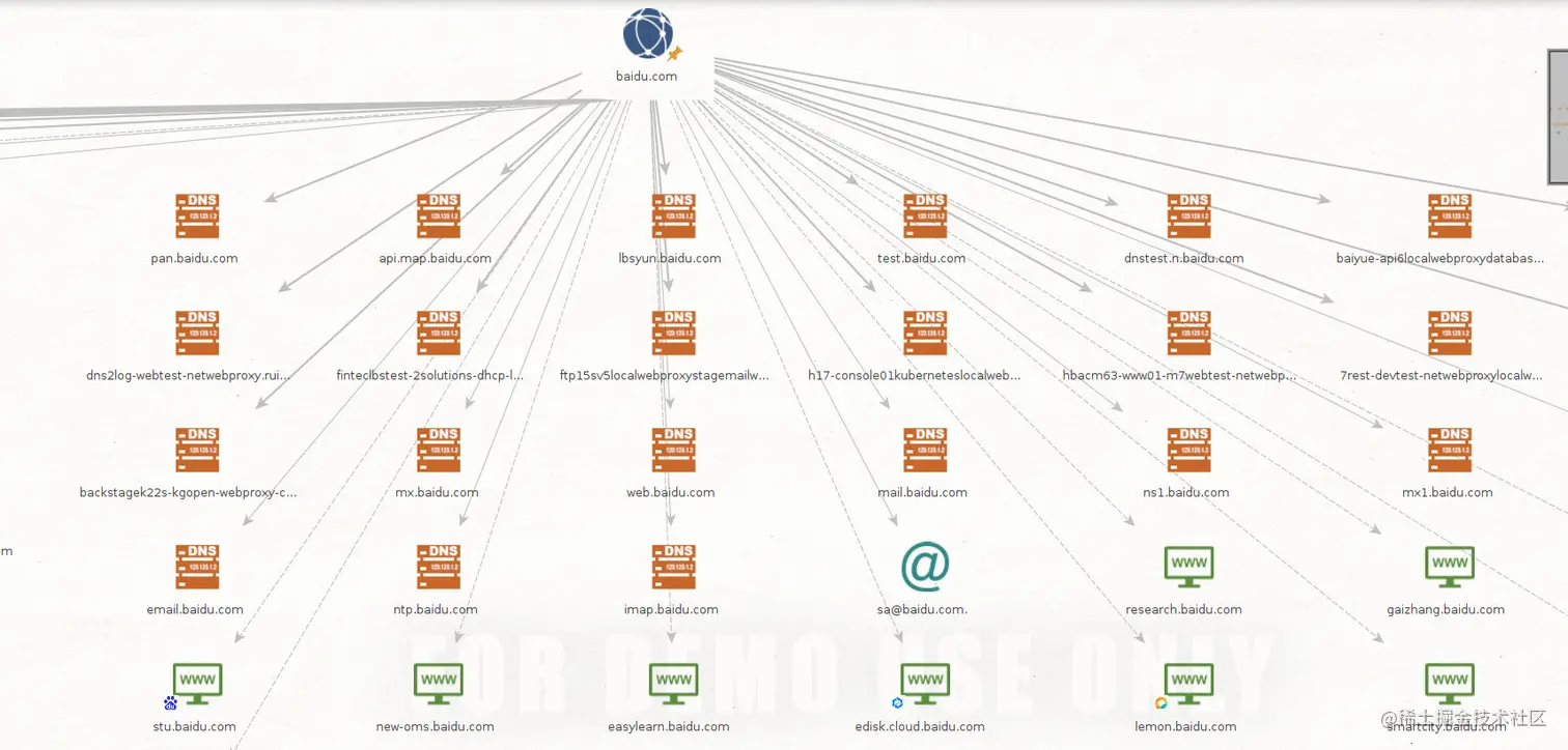 由于我采用的是探索深度不深的Footprint L1搜集方式,因此找到的信息量并不大。