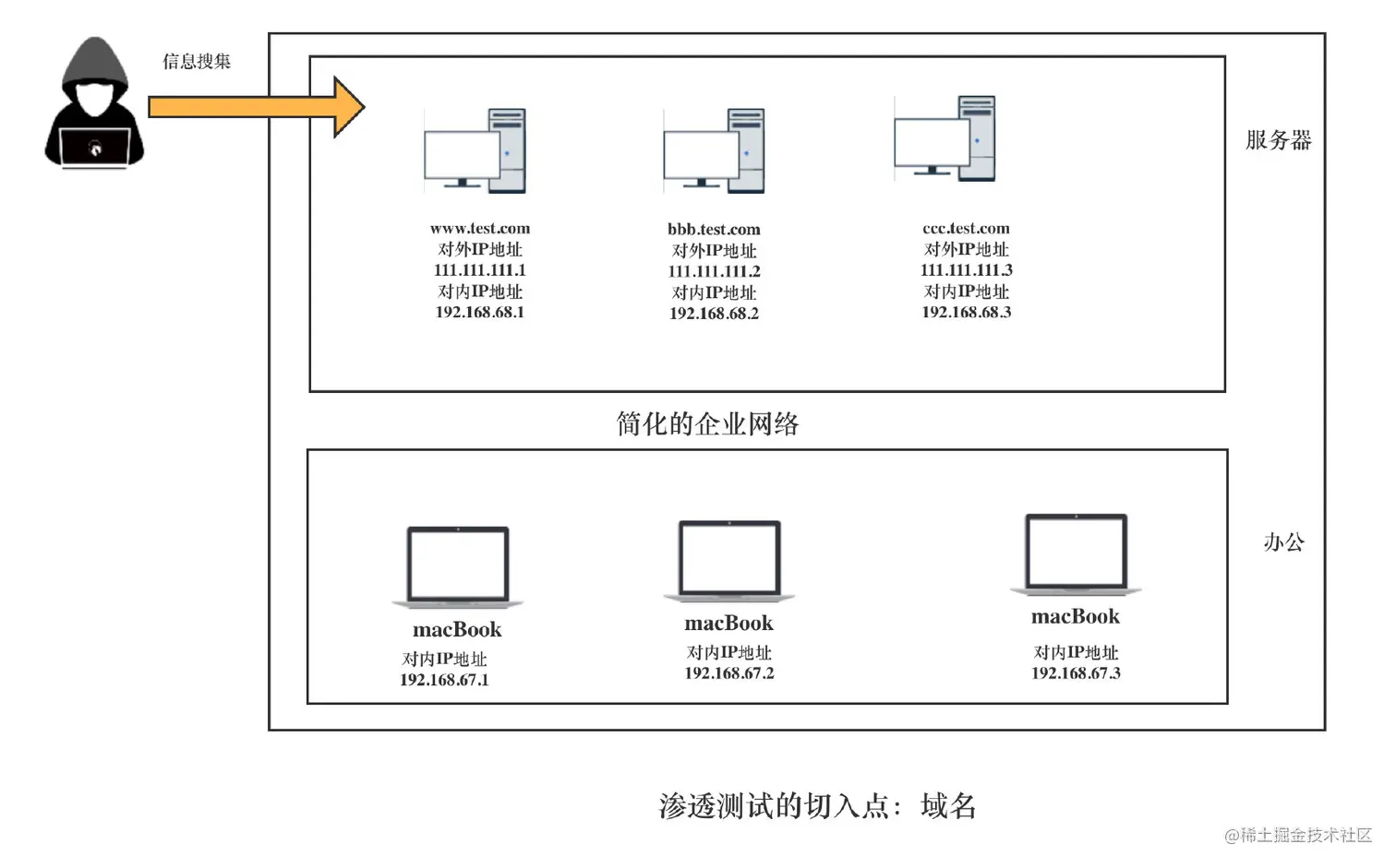 那么信息搜集要从哪几个方面来着手呢?以目标www.test.com为例,我们可以想法获取以下信息。